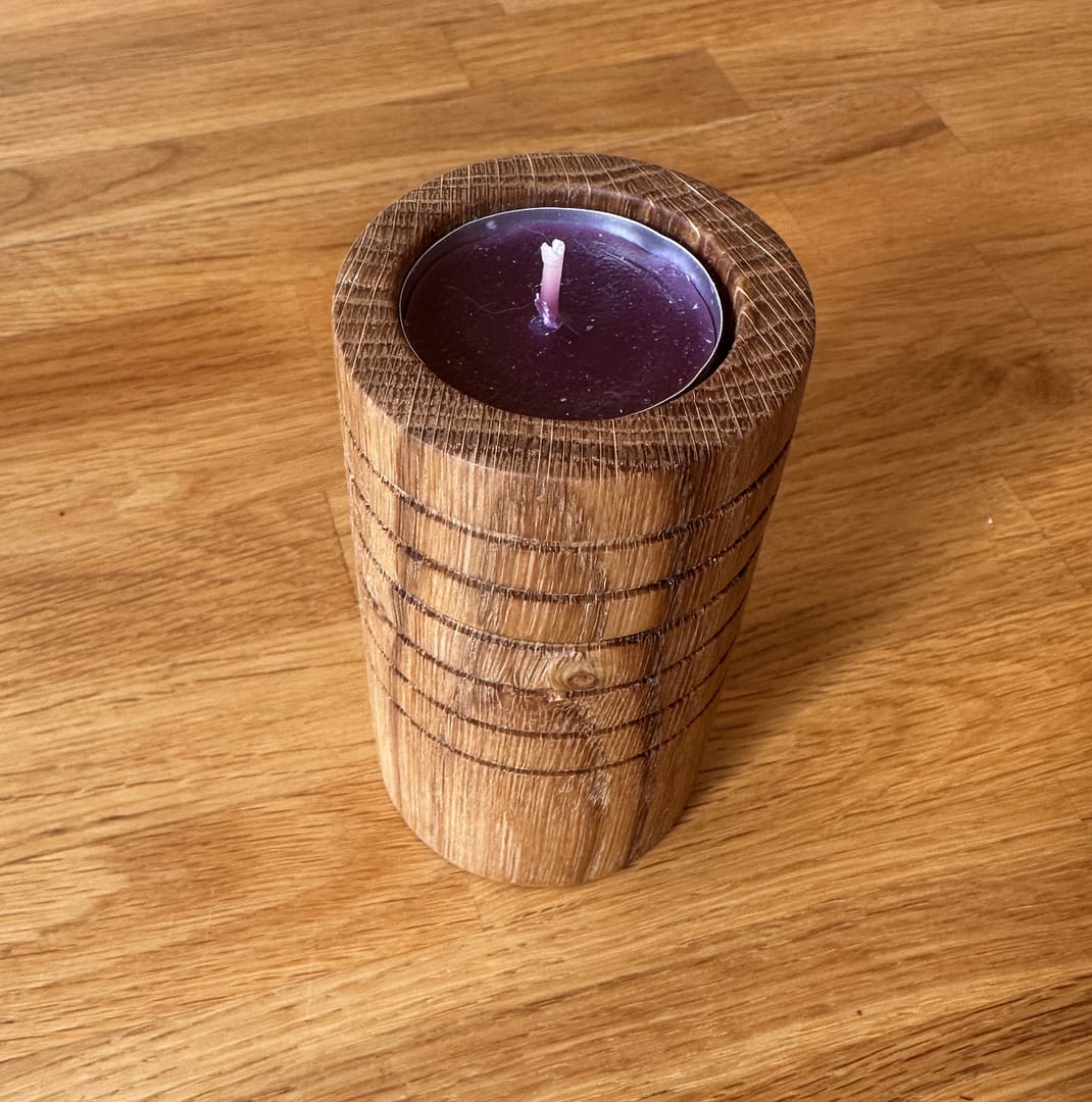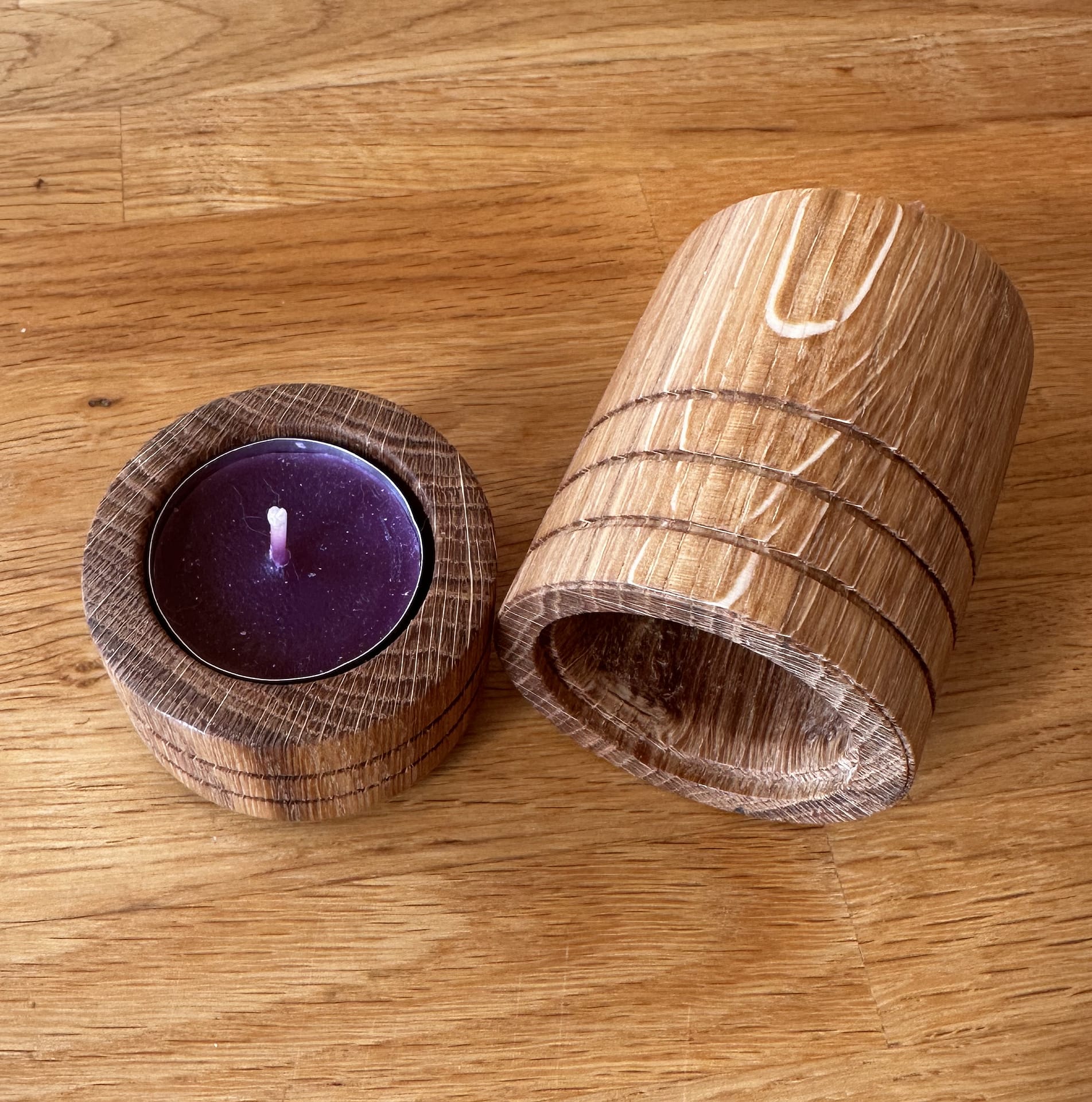 Eichenholz, eigene Herstellung, geölt mit Leinöl, inkl. Dose innen